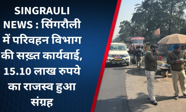 SINGRAULI NEWS : सिंगरौली में परिवहन विभाग की सख़्त कार्यवाई, 15.10 लाख रुपये का राजस्व हुआ संग्रह