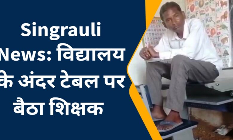 Singrauli News: विद्यालय के अंदर टेबल पर बैठा शिक्षक