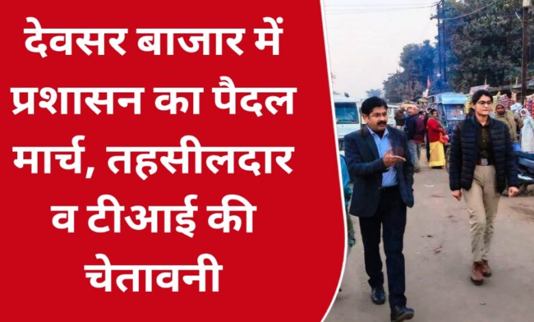 सिंगरौली । नेशनल हाईवे सीधी-सिंगरौली 39 के फुटपाथों पर बढ़ते अतिक्रमण को लेकर प्रशासन एक बार फिर सख्त नजर आया। देवसर बाजार को अतिक्रमण मुक्त कराने के उद्देश्य से आज दिन गुरूवार को तहसीलदार एवं थाना प्रभारी टीआई देवसर ने पुलिस बल के साथ पैदल मार्च किया और कब्जाधारियों को सख्त हिदायत दी। प्रशासनिक अधिकारियों ने स्पष्ट शब्दों में कहा…