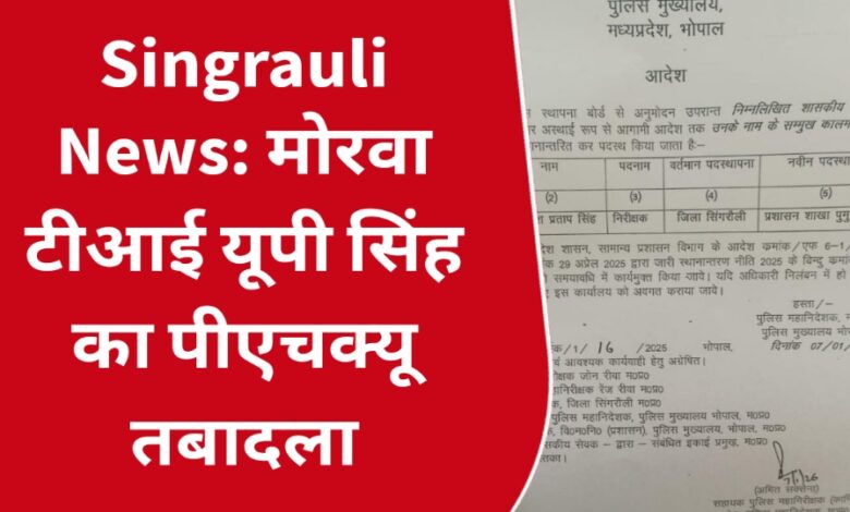 Singrauli News: मोरवा टीआई यूपी सिंह का पीएचक्यू तबादला
