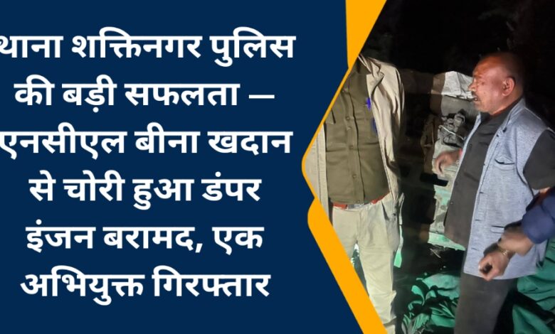 Sonbhadra News: थाना शक्तिनगर पुलिस की बड़ी सफलता — एनसीएल बीना खदान से चोरी हुआ डंपर इंजन बरामद, एक अभियुक्त गिरफ्तार